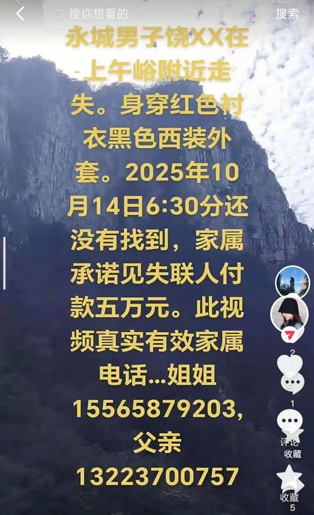 当晚8时许,他致电饭店老板称“迷路且手机快没电”,并提及“看到亮光准备循光下山”,此后便彻底失去联系。